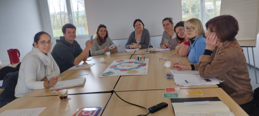 Quentin Picard Lesteven, référent jeunesse du centre social, maître du jeu, fait participer chacun. Cette formation a apporté des connaissances sur la prévention pour un usage raisonnable des réseaux sociaux. Il permet de partager avec les jeunes des notions de cyber-harcèlement, de droits d’auteurs, de captation, d’écologie numérique, etc. de manière ludique. Hélène Moallic, CPE, Conseillère d’Éducation au Collège Collobert, nous a partagé quelques connaissances apprises sur le terrain, comme l’utilité de l’application 3018 (coffre-fort) ou les comptes Fisha (cyber-harcèlement)