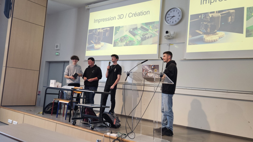 L’oral a permis au public de comprendre les étapes du projet. Les élèves ont pris la parole à tour de rôle sur la programmation, l’élément d’impression en 3D et le robot, puis ils ont montré une courte vidéo réussie du robot en action.