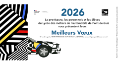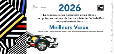 Cette année 2026, la carte de vœux est réalisée à partir du travail de Thomas Gagnon, élève de 1re Bac Pro en Carrossier-Peintre Automobile sous la direction de Gildas Bitout, professeur d’Arts Appliqués.